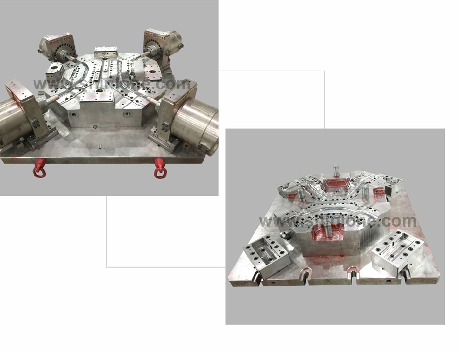 液压成形是一种特殊类型的冷成形,使用一个高压液体流在常温状态下把管子液压成模具。该工艺包括预弯曲一个金属管,并把这个预成形的管子置入目标形状的模具内,并施加压力。在模具内的管子受到压力的作用下,可以同时在管子上穿孔,从而避免在大多数情况下的二次操作。液压成形能够形成复杂的带凹面形状,标准的冲压做不到这点。